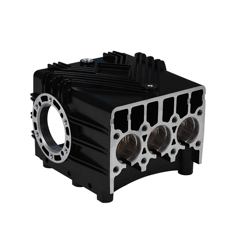 a) Configuración del cilindro: Uno de los aspectos más fundamentales del diseño del bloque del motor es la configuración del cilindro. La disposición y la cantidad de cilindros afectan directamente la potencia, la suavidad y el tamaño general del motor. Las configuraciones comunes incluyen: Bloques de motor en línea (recto): los cilindros están dispuestos en una sola fila, lo que hace que el diseño sea simple y compacto. Los motores en línea son conocidos por su buen funcionamiento y facilidad de fabricación. Bloques de motor en V: Los cilindros están dispuestos en dos bancos colocados en ángulo entre sí, formando una "V". Los motores en V, como el V6 o el V8, permiten más cilindros en una longitud más corta, lo que proporciona una mayor potencia y al mismo tiempo mantiene un diseño compacto. Bloques de motor planos (Boxer): los cilindros se encuentran planos y se oponen entre sí horizontalmente. Esta configuración, utilizada en algunos coches deportivos y de alto rendimiento, baja el centro de gravedad del motor y mejora el equilibrio. Bloques de motor W: Una extensión del motor V, con tres bancos de cilindros dispuestos en forma de "W". Este diseño permite incluso más cilindros en un espacio compacto, utilizado en algunos motores de alto rendimiento. Ningbo Fenda New Energy Technology Co., Ltd. emplea técnicas de fabricación avanzadas con sus 6 máquinas de fundición a presión de aluminio a gran escala que van desde 400T a 2000T, junto con 80 centros de mecanizado de alta velocidad y alta precisión y 30 máquinas herramienta de mecanizado eléctrico y soldadura por fricción-agitación de alta precisión. Estas capacidades permiten la fabricación precisa de bloques de motor que cumplen con diversos requisitos de configuración de cilindros, lo que garantiza un rendimiento y una durabilidad óptimos.